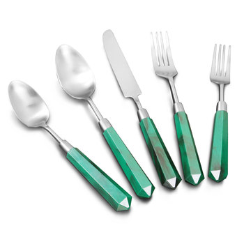 304 Stainless Steel Acrylic Pearlescent Green Bamboo Style Handle Cutlery Set Knife Fork Spoon Silverware for Wedding